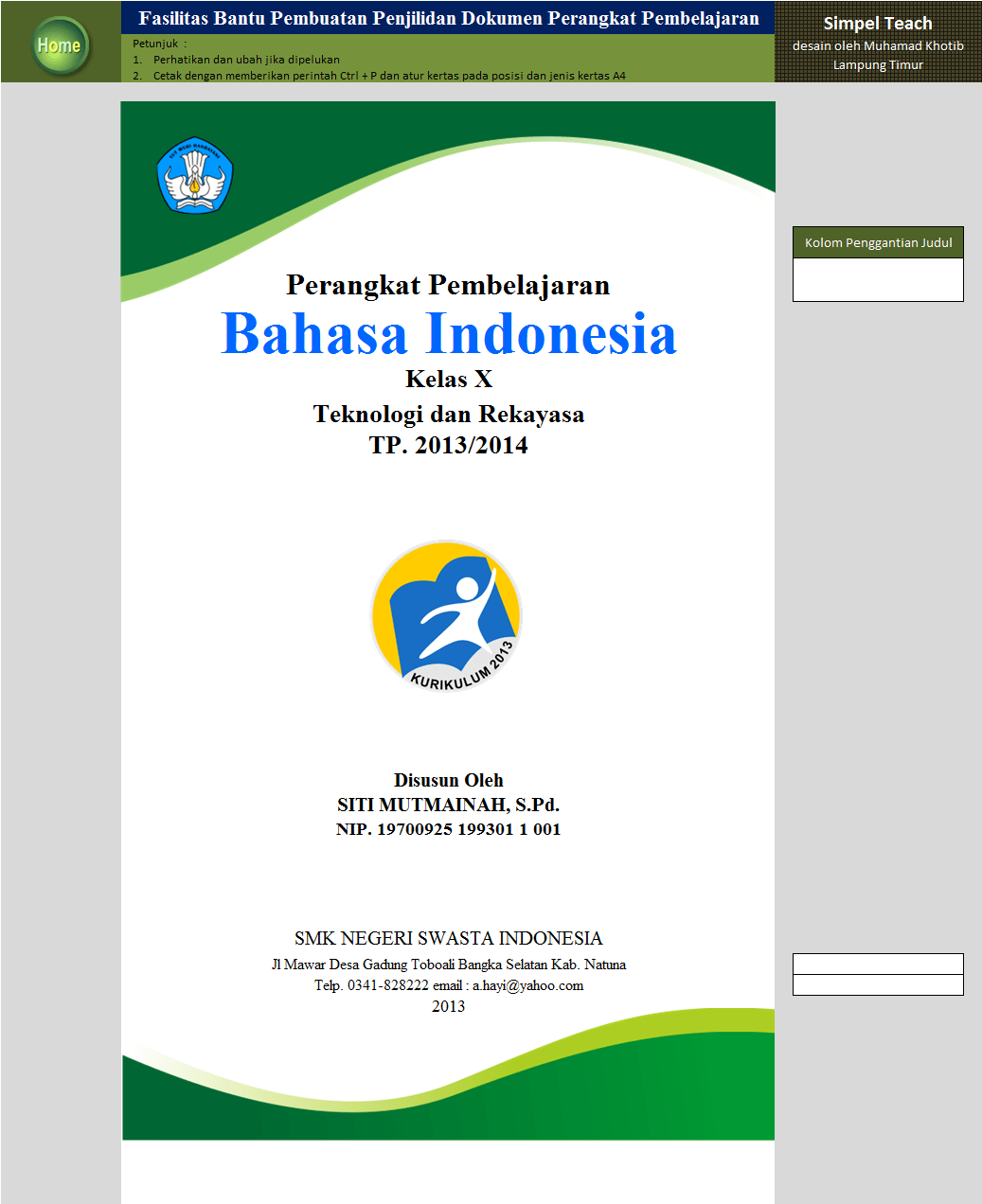 Terutama dari yang sekolahnya mengacu pada standar kurikulum ktsp,. Documents, downloads, size mb, created, modified. Cd rpp k13 perangkat pembelajaran sma smk ma mak mapel bahasa indonesia . Download silabus bahasa inggris smk kelas xii kurikulum ktsp 2006. Setiap tahun pembelajaran, guru yang mengajar di kelas membutuhkan perangkat pembelajaran berupa agenda, jurnal dan lainnya yang harus .